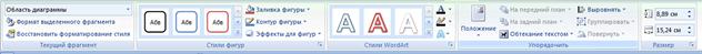 Вкладка Формат позволяет осуществить изменение цвета элементов диаграммы (заливка фигуры, контур фигуры), изменить положение диаграммы в тексте: