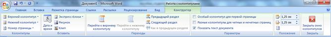 После вставки номера страницы при необходимости можно воспользоваться вкладкой Работа с колонтитулами Конструктор:
