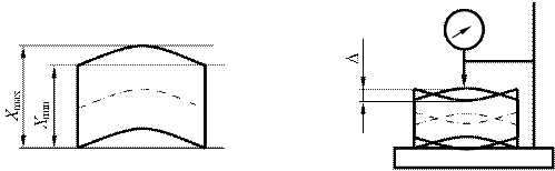 Другим частным случаем отклонения от профиля продольного сечения является изогнутость, в этом случае все сечения имеют одинаковый диаметр. Изогнутость измеряется на поверочной плите с помощью измерительной головки (рис. 12.18).