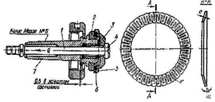 Рис. 3.8. Цанга. Кроме цанги для зажима деталей имеющих цилиндрическую поверхность, применяют разжимные оправки, зажимные втулки с гидропластом, оправки и патроны с тарельчатыми пружинами, мембранные патроны и другие. Консольные и центровые оправки применяют для установки с центральным базовым отверстием втулок, колец, шестерен, обрабатываемых на многорезцовых шлифовальных и других станках. При обработке партии таких деталей требуется получить высокую концентричность наружных и внутренних поверхностей и заданную перпендикулярность торцов к оси детали. В зависимости от способа установки и центрирования обрабатываемых деталей консольные и центровые оправки можно подразделить на следующие.виды: 1) жесткие (гладкие) для установки деталей с зазором или натягом; 2) разжимные цанговые; 3) клиновые (плунжерные, шариковые); 4) с тарельчатыми пружинами; 5) самозажимные (кулачковые, роликовые); 6) с центрирующей упругой втулкой.
