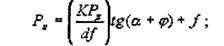9. Сила на штоке механизированного привода патрона, необходимая для прогиба мембраны и разведения кулачков при разжиме детали, на максимальный угол j/: