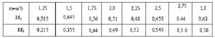 3. Радиусом а наружной поверхности мембраны (из конструктивных соображений) задаются. 4. Отношение т радиуса а мембраны к радиусу Ъ установочной поверхности детали: а/b = т. 5. Моменты M1 и M3 в долях от Ми (Ми= 1) находят в зависимости от т= а/b по следующим данным (табл. 3.1): Таблица 3.1