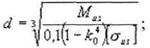 Полученное значение округляется в сторону увеличения до целого или ближайшего стандартного значения. При наличии шпоночного паза в опасном сечении детали полученное расчетом значение d следует увеличить на 5...10 %. Расчеты на прочность валов и осей с целью определения их размеров (задача б) можно производить по формулам: на изгиб (детали круглого сечения)