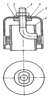 Рис. 13.12. Капсульный колпачок 1-шайба; 2-гайка; 3-болт; 4-втулка; 5-колпачок; 6-патрубок