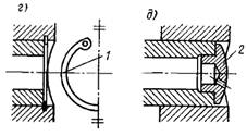 Рис. 3.11. Поршневые пальцы: а, б, в – конструктивные формы; г, д – способы фиксации от осевого перемещения.