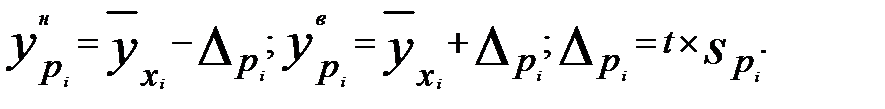 Исходя из предпосылки нормального распределения остатков границы доверительных интервалов определяются по формулам: