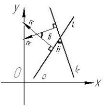 Означення 1. Тангенс кута нахилу прямої до додатного напрямку осі Ох називається кутовим коефіцієнтом прямої. Нехай Означення 2. Число b називається початковою ординатою прямої, а рівняння Зауваження. Кутовий коефіцієнт прямої, яка паралельна осі Оу, не існує. Нехай на площині задано дві прямі: Нехай