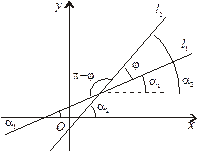 Зауважимо, що кут між l 1 і l 2 не дорівнює куту між l 2 і l 1. Пригадуючи, що tg a1 = k 1; tg a2 = k 2, а також, що виконується очевидне співвідношення між кутами j = a2 – a1 (рис. 1), маємо: