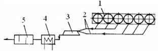 Рис. 4.6. Схема системы газоотвода Система газоотвода состоит из выпускных коллекторов, утилизационных газовых турбин, утилизационных котлов, глушителей шума, газоводов (трубопроводов). Выпускные коллекторы предназначены для отвода из цилиндров отработавших газов с максимально возможным сохранением их энергии. При этом они должны способствовать очистке цилиндров от остаточных газов. Утилизационные газовые турбины преобразуют механическую энергию отработавших в цилиндрах газов в крутящий момент, утилизационные котлы – тепловую энергию отработавших газов в энергию пара (воды). Глушители шума предназначены для снижения вредного звукового воздействия отработавших газов па окружающую среду. Классификация систем: – по глубине утилизации тепла – без утилизации теплоты, с умеренной утилизацией теплоты и с глубокой утилизацией теплоты. В системах без утилизации теплоты отработавшие в цилиндрах газы отводятся в окружающую среду без предварительного протекания через специальные устройства – утилизаторы. В системах с умеренной утилизацией теплоты механическая энергия отработавших в цилиндрах газов используется в газовых турбинах. В системах с глубокой утилизацией теплоты как механическая, так и тепловая энергия отработавших в цилиндрах газов используется в утилизаторах; – по особенностям движения газа в коллекторе – изобарные, импульсные и комбинированные. В изобарных системах давление газов в коллекторе при работе двигателя на установившемся режиме практически постоянно, в импульсных – переменно и зависит от числа цилиндров из которых отводятся газы в один коллектор. Для комбинированных систем характерны переменное давление газа в коллекторе и выравнивание его перед турбиной.