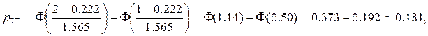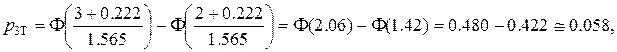 За таблицею нормального розподілу (Додаток Б, таблиця Б1) на перехрещенні рядку 3.3 і стовпця 0.04 знайдемо, що Розглянемо другий інтервал