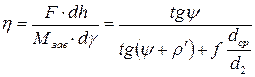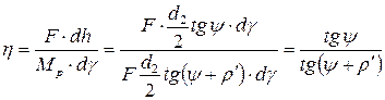 КПД резьбы определяется как отношение полезной работы на винте к затрачиваемой работе на ключе при повороте на произвольный угол. Элементарное поступательное перемещение винта