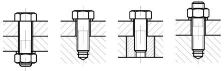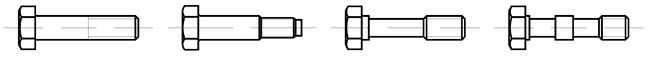 По форме стержня винты бывают: с нормальным стержнем (рис. 2.11 а); с утолщенным стержнем для установки в отверстие без зазора, для предотвращения сдвига соединяемых деталей (рис. 2.11 б); со стержнем уменьшенного диаметра и подголовком (центрирующим пояском) (рис. 2.11 в). Последние болты обладают повышенной податливостью и пониженной концентрацией напряжений у резьбы и применяются в ответственных соединениях, воспринимающих переменные и ударные нагрузки. На них иногда посередине делают поясок для гашения вибрации стержня (рис. 2.11 г).