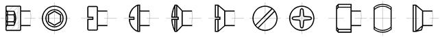 В условиях частого завинчивания и отвинчивания, например, в станочных приспособлениях, и при наличии свободного пространства для поворота ключа, применяют квадратные головки (рис. 2.10 б и 2.10 в). В условиях стесненных габаритов применяют винты с головками, имеющими на поверхности шлицы треугольного профиля (рис. 2.10 г). Такие головки требуют специальных торцевых ключей и поэтому имеют ограниченное применение. Головки с внутренним и торцевым захватом можно устанавливать в углублениях на детали, что уменьшает габариты, придает гладкую, удобную для обслуживания форму изделия, улучшает эстетику. Широкое распространение в последнее время получили головки с внутренним шестигранником (рис. 2.10 д). Размер шестигранника подобран таким образом, что максимальный момент затяжки, допускаемый ключом, соответствует прочности винтов и является предохранительным элементом от перетяжки. Так же широко распространены головки со шлицами под обычную (рис. 2.10 к) и крестообразную (рис. 2.10 л) отвертки. Головки могут быть цилиндрическими (рис. 2.10 е), полукруглыми (рис. 2.10 ж), потайными (рис. 2.10 и) или полупотайными (рис. 2.10 з). Головки под обычную отвертку применяют для винтов малых размеров и для малых сил затяжки. Головки с крестообразным шлицом более совершенны и допускают несколько больший момент затяжки. Из головок, препятствующие проворачиванию, наиболее распространены закладные головки квадратной формы (рис. 2.10 б) или с двумя лысками (рис. 2.10 м), которые закладывают в специальные гнезда, выполненные в корпусе детали. Так же применяются круглые головки с усиком, вызывающим обмятие детали (рис. 2.10 н), или некруглым подголовком.