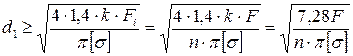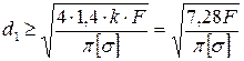 При проектировании по известной нагрузке резьбу можно подобрать по расчетному внутреннему диаметру резьбы: