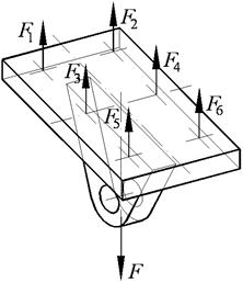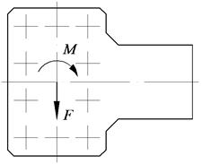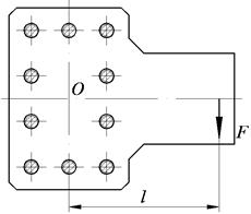 Так как соединение симметричное, а кронштейн считается абсолютно жестким, то нагрузка, приложенная к кронштейну, равномерно распределяется между болтами: