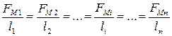 Рассмотрим распределение нагрузки между болтами соединения отдельно от воздействия силы F и от воздействия момента M. От действия силы F нагрузка распределяется равномерно между всеми болтами соединения (рис. 2.21 а):