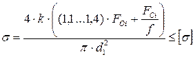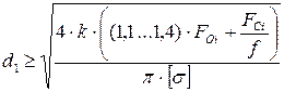 При проектировочном расчете внутренний диаметр резьбы: