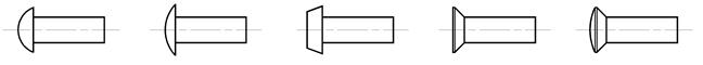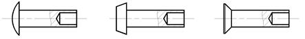 2.2.2 Конструкция заклепок Заклепки со сплошным стержнем: с полукруглой головкой (рис. 2.26 а) (ГОСТ 10299-80, ГОСТ 14797-85), имеющие основные применение в силовых и плотных швах; с полукруглой низкой головкой (рис. 2.26 б); с плоской головкой (рис. 2.26 в) (ГОСТ 14801-85), предназначенные для работы в коррозионных средах; с потайной головкой (рис. 2.26 г) (ГОСТ 10300-80, ГОСТ 14798-85), применяемые при недопустимости выступающих частей (в частности, в самолетах); с полупотайной головкой (рис. 2.26 д), для соединения тонких листов.