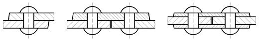 2.2.4 Конструкция заклепочных соединений Заклепочные соединения по конструкции разделяют на соединения внахлест (рис. 2.28 а), соединения с одной накладкой (рис. 2.28 б) и соединения с двумя накладками (рис. 2.28 в).