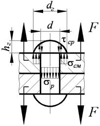 Напряжения растяжения в стержне заклепки: