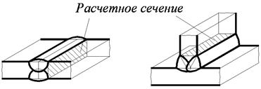 2.3.5.1 Стыковые соединения Для большинства сварных соединений преобладающим является нагрузка с малым общим числом циклов, поэтому основным расчетом является расчет по номинальным напряжениям. Стыковые швы на прочность рассчитываются по номинальному сечению без учета усиления шва. Тавровые и угловые швы с глубокой проплавкой также можно рассматривать в качестве стыкового шва. В качестве расчетного сечения берется сечение по границе наплавленного и основного металла (см. рис. 2.32), так как это оно меньше по площади поперечного сечения, чем площадь шва, и в то же время, оно ослаблено термическим влиянием сварки.