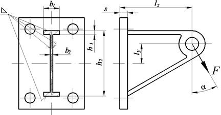 Пример решения задачи: Проверить прочность сварного соединения кронштейна, представленного на рис. 4.4, при приложении к нему силы F. Нагрузка статическая, постоянная. Сварные швы – угловые. Способ сварки – ручная дуговая сварка, коэффициент проплавления