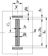 2. Сечение сварного соединения симметричное, оси x, y, z проходят через центр сечения. Размеры расчетного сечения сварного соединения показаны на рис. 4.5, где