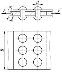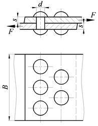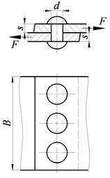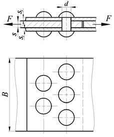 Условие прочности соблюдается. Задача 1.3 Заклепочные соединения Рассчитать несущую способность заклепочного соединения, показанного на рисунке, нагруженного статической растягивающей силой. Допускаемые напряжения для материала заклепок: Таблица 4.3 Варианты исходных данных для задачи 3.1