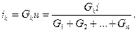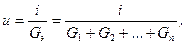 Якщо додатні напрями струмів в елементах вибрати такими, як показано на рис. 4.1, то відповідно до першого закону Кірхгофа i - i 1 - i 2 … - i n = 0, або струм i = i 1+ i 2 +... + i n, але струм ik = Gk,u (k = 1, 2,..., n). Тому струм i = G1 u + G 2 u +... + Gnu = Gэu, де