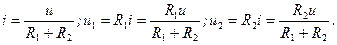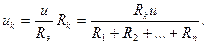 Напруга на затисках будь-якого з резисторів послідовного резистивного електричного кола (див. рис. 4.4) дорівнює множенню напруги, підведеної до зовнішніх затисків кола, на опір цього резистора, діленому на суму опорів резисторів, що входять в з'єднання (правило ділення напруги), тобто