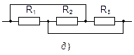 1. Знайти опори трьохелементних двополюсників, зображених на рис. 4.8 (а – д). Значення параметрів елементів (n – номер студента за списком у групі): R 1= (1.0 + 0.1× n) кОм, R 2= (1.6 + 0.1× n) кОм, R 3= (3.0 + 0.1× n) кОм.
