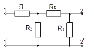 3. Для зображеного на рис. 4.10 чотириполюсника знайти опір з боку: а) затисків 1-1¢ (вхідний опір), якщо затиски 2-2¢ розімкнуті або замкнуті; б) затисків 2-2’ (вихідний опір), якщо затиски 1-1’ розімкнуті або замкнуті. Значення параметрів елементів: R 1= (5.0 + 0.1× n) кОм, R 2= (10 + 0.1× n) кОм, R 3= R 4= (20 + 0.1× n) кОм.