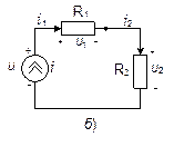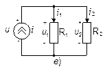 4. Знайти струми і напруги елементів в простіших послідовних і паралельних колах, схеми яких приведено на рис. 4.11. Значення параметрів елементів: R 1= (10 + 0.1× n) кОм, R 2= (15 + 0.1× n) кОм, u = 10 В, i = 0.5 А.