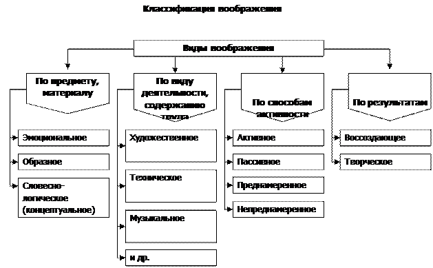 Процесс воображения всегда протекает в неразрывной связи с двумя другими психическими процессами – память и мышление. С помощью воображения человек способен выполнять следующие действия: 1. Предвосхищение результатов труда (в том числе, промежуточных). 2. Предвидение будущего, планирование деятельности, программирование поведения. 3. Решение проблемных ситуаций с высокой степенью неопределенности, отыскание решений при дефиците информации, поиск новых путей выхода из таких ситуаций. 4. Замена деятельности бесплодным фантазированием. Воображение как процесс представляет собой преобразование образов памяти, т. е. комбинирование этих образов, конструирование из их частей новых представлений. Следовательно, для создания образов воображения необходимо сначала расчленить образы памяти на отдельные составляющие. Этот процесс разъединения образов носит название диссоциации. Затем следует процедура ассоциации - соединения этих частей в новых комбинациях. Как в восприятии и памяти, в воображении проявляются все виды и уровни психической организации человека, что может быть отражено в соответствующих классификациях, основные из которых приводятся ниже. Активное воображение - преобразование представлений, направленное на плодотворную организацию деятельности. Пассивное воображение - преобразование представлений, направленное на уход от действительности и замещение деятельности бесплодным фантазированием. Произвольное воображение - преднамеренное преобразование представлений, сознательно регулируемое субъектом как цель его деятельности. Непроизвольное воображение - непреднамеренное преобразование представлений без осознания цели и причин процесса, без его сознательного регулирования. Воссоздающее (репродуктивное) воображение - воспроизведение представлений неизвестных субъекту предметов и явлений по их описанию. Например, чтение книги вызывает образы соответствующих сцен и персонажей, рассматривание чертежа определяет представление о соответствующем механизме, словесный портрет дает возможность представить незнакомого человека и т. д. Творческое (преобразующее) воображение - формирование новых оригинальных представлений, реализуемых в процессах и продуктах деятельности. Конкретное воображение - оперирование представлениями об определенных, конкретных предметах и явлениях в совокупности их свойств и отношений. Абстрактное воображение - оперирование обобщенными представлениями (схемы, символы, знаки), отражающими сущность предметов и явлений и наиболее существенные их свойства и отношения. Образы воображения (в первую очередь в узком значении феномена «образ») могут реализовываться в нескольких формах. Основные из них: фантазии, мечты, идеалы, грезы, сновидения, галлюцинации. Тема 2.2. Память и внимание Память — это психический процесс запечатления, сохранения и воспроизведения того, что человек отражал, делал или переживал. Память — запоминание, сохранение и последующее воспроизведение индивидом его опыта.