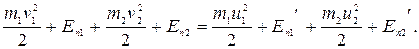 Если шары движутся в горизонтальной плоскости, то их потенциальная энергия Еn остается неизменной. Полная механическая энергия системы до удара