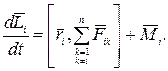 Выведем уравнение динамики вращательного движения тела. Из выражений (4.1), (4.2) и (4.3) следует, что скорость изменения момента импульса i -й материальной точки определяется следующим образом: