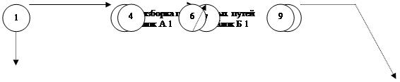 Ый вариант организации работ. Разработка вариантов организационно-технологических схем возведения надземной части здания. Предлагаемые варианты организации работ по возведению надземной части здания представлены на рис. 3а, 3б, 3в. Для оценки предлагаемых вариантов разрабатываются и рассчитываются сетевые модели и определяются оценочные показатели для каждой модели. Вариант 1. Строительство блоков А и Б осуществляется параллельно башенными кранами КБ 100.1, строительство блока В – краном МКП-25А. Характеристики кранов представлены в приложении 1. Таблица 2