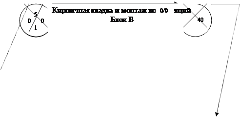 Всего 3439,6 Карточка-определитель работ сетевой модели для схемы 3. За захватку принимается отдельный блок: 1-ая захватка – блок А; 2-ая захватка – блок В; 3-я захватка – блок Б. Затрата труда на разборку и устройство подкрановых путей, а также установку башенного крана рассчитываются отдельно исходя из следующих нормативных затрат труда: Устройство подкрановых путей – 15,5 чел-час на одно звено (6,25м); Разборку подкрановых путей - 11,5 чел-час на разборку одного звена (6,25м) Монтаж башенного крана – 68,3 чел-час на один кран. Демонтаж крана – 42,1 чел-час на один кран. Длина устраиваемых подкрановых путей к блоку Б составляет 62,5 м (10 звеньев), к блоку В – 25 м (4 звена). Длина разбираемые путей у блока А составляет 62,5 м (10 звеньев). Затраты труда на разборку путей и демонтаж крана у блока А и установку у блока Б составят (11,5 + 15,5)х10 + 42,1х1 + 68,3х1 = 380,4 чел-час. или 47,6 чел-дн. Затраты труда на устройство подкрановых путей и установку крана к блоку В составят 15,5х4 + 68,3х1 = 130,3 чел-час. или 16,3 чел-дн. Таблица 5