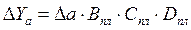 Этот способ применяется для расчета влияния факторов на прирост результативного показателя только в мультипликативных и смешанных моделях типа: Y=(a-b) ∙c и Y=a∙(b-c). Причем особенно эффективно его применение в том случае, если исходные данные уже содержат абсолютные отклонения по факторным показателям. Величина влияния факторов рассчитывается умножением абсолютного прироста исследуемого фактора на базовую (плановую) величину факторов, которые находятся справа от него, и на фактическую величину факторов, расположенных слева от него в модели. Рассмотрим алгоритм расчета для: a) мультипликативной факторной модели: Y=A∙B∙C∙D Имеются плановые и фактические значения по каждому факторному показателю, а также их абсолютные отклонения: