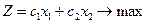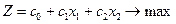 Необхідно знайти такий план виробництва продукції, який забезпечить найбільший сумарний дохід. Побудуємо математичну модель задачі. Позначимо: х 1, х 2 – загальна кількість продукції П 1 та П 2; Z – сумарний дохід, який отримаємо від реалізації всієї продукції П 1 та П 2. Запишемо цільову функцію задачі. Дохід від реалізації одиниці продукції П1 становить с1, а всього цієї продукції плануємо випустити х1 одиниць, тому перемноживши с1 на х1, отримаємо весь дохід, який матимемо від реалізації всієї продукції. Аналогічно дохід від реалізації продукції П 2 становитиме с2х2. Додамо ці два доданки (с1х1+с2х2) і отримаємо весь дохід від реалізації всієї продукції П1 та П2. Оскільки ми хочемо отримати найбільший дохід, то будемо знаходити максимальне значення цільової функції:
