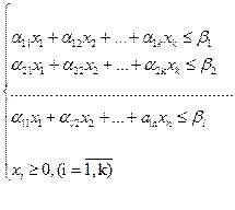 Існуючі методи розв’язування задач лінійного програмування передбачають певні вимоги до системи основних обмежень (3.2), тому розрізняють дві стандартні форми запису задач лінійного програмування: І-ша - з обмеженнями-рівняннями; ІІ-га - з обмеженнями-нерівностями. Запишемо задачу лінійного програмування в першій стандартній формі: