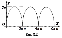 Остання формула є канонічним рівнянням еліпса з центром у початку координат і півосями а і b. Таким чином, система (8.6) є параметричним заданням еліпса. Приклад 8.10. Циклоїда. Означення. 8.1 Циклоїдою називається лінія, яка описується точкою, що лежить на колі, яке котиться без ковзання по прямій (рис. 8.2).