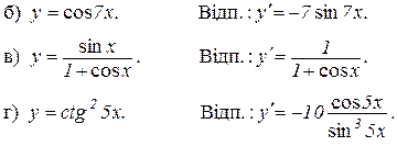 Приклади до розділу 8. 1. Знайти похідну функції: а)