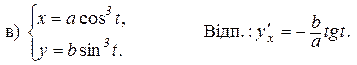 Остання формула дає змогу обчислювати похідну функції, заданої параметрично, не переводячи її в неявно або явно заданий вигляд. Приклад 8.11. Знайти похідну функції