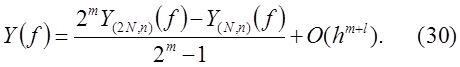 где Имеются простые способы преодоления дефекта локально интерполяционных квадратурных формул – их насыщаемости. Все они основаны на простом соображении, что у соответствующей линейной комбинации двух значений составной квадратурной формулы с различными, но кратными шагами, главный член погрешности исключается. Например, для правила трапеций в силу (28) Пусть погрешность локально-интерполяционной квадратурной формулы (25) представима в виде