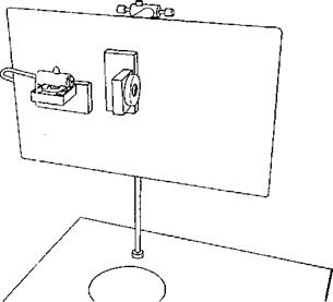 Установите на оптическом столике стойку штатива и закрепите на стойке рабочее поле. На расстоянии от собранной установки 2-3 м расположите экран. С помощью угловых подставок поместите на вертикально расположенном рабочем поле полупроводниковый лазер и дифракционную решетку 50 шт/мм (период решетки 0,02 мм). Включите в сеть блок питания лазера и приступите к юстировке оптической системы. Направьте луч лазера в центр экрана после чего установите на пути луча дифракционную решетку. Луч должен проходить примерно через ее середину. После этого на экране появится ряд точек - дифракционные максимумы различных порядков. Вместо дифракционной решетки 50 шт/мм установите дифракционную решетку 150 шт/мм (период решетки 0,0067 мм). Пронаблюдайте дифракционную картину второй решетки.