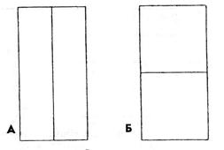Фигура, разделённая вертикальной полосой (А), смотрится уже, чем разделённая горизонтальной (Б), которая кажется шире.