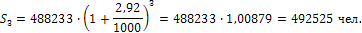 Определяем перспективную численность населения через три года:
