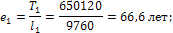 Условное поколение принимаем в 10000 человек. Предстоящее число человеко-лет для данного поколения 660000. На основе возрастных коэффициентов смертности можно определить: