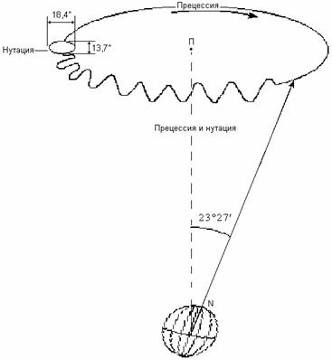Рис.1.23. Прецессия и нутация оси вращения Земли
